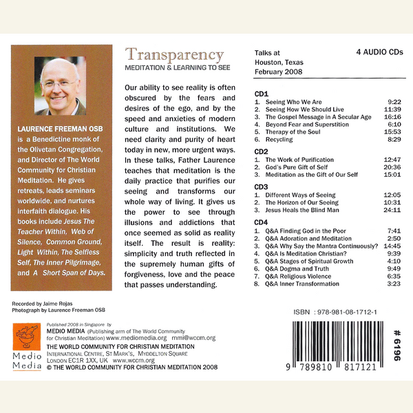 In these talks, Laurence Freeman presents meditation is a daily discipline that purifies our seeing and transforms our whole way of living. Practised faithfully, meditation gives us the power to see through illusions and addictions that once seemed as solid as reality itself. The result is reality: simplicity and truth reflected in the supremely human gifts of forgiveness, love and the peace that passes understanding.