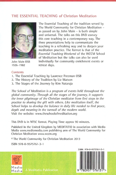 The talks on this DVD convey, in a contemporary way, the core teaching of Christian meditation passed on by John Main. Three speakers communicate the teaching with refreshing clarity and help to deepen your meditation practice.